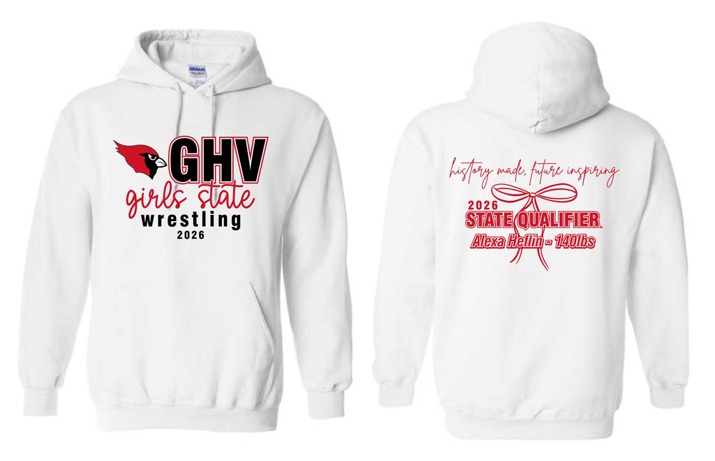 GHV Girls State Wrestling 2026 - White Hooded Sweatshirt Youth & Adult
